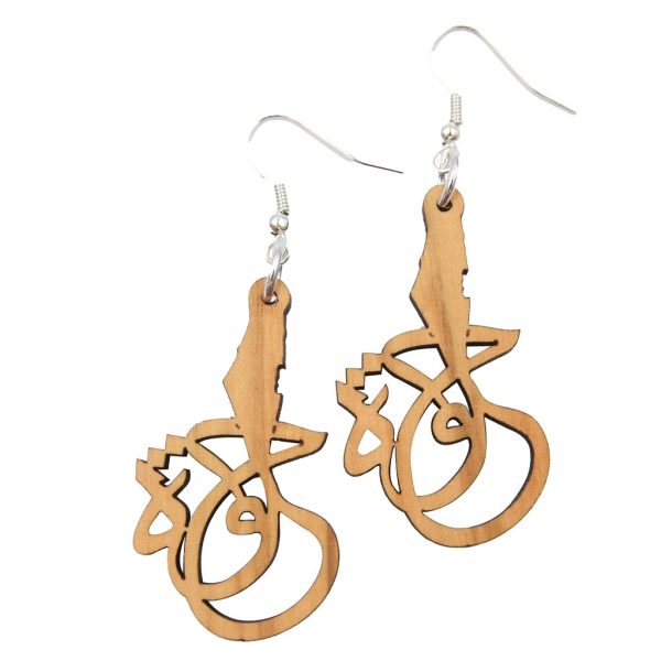 Palestine is Beautiful, Arabic calligraphy olivewood earrings